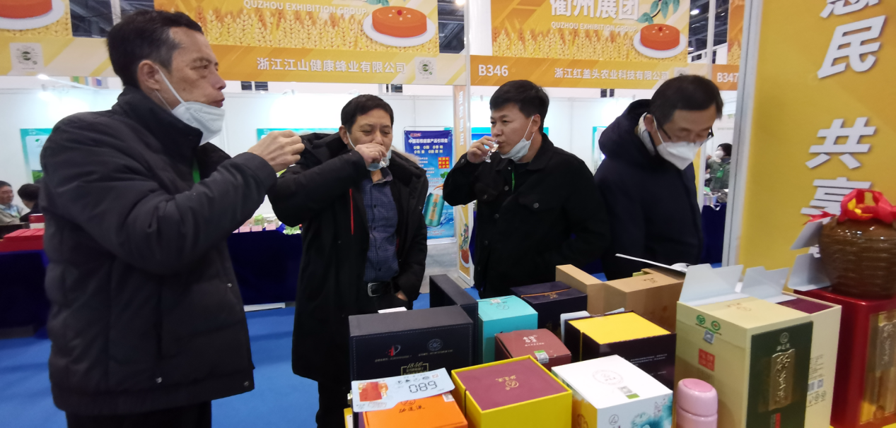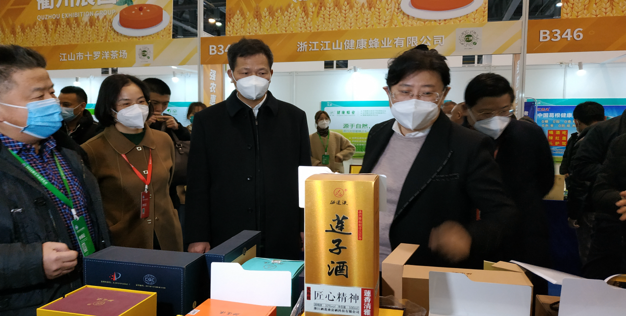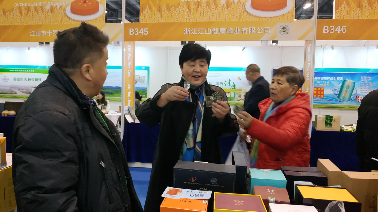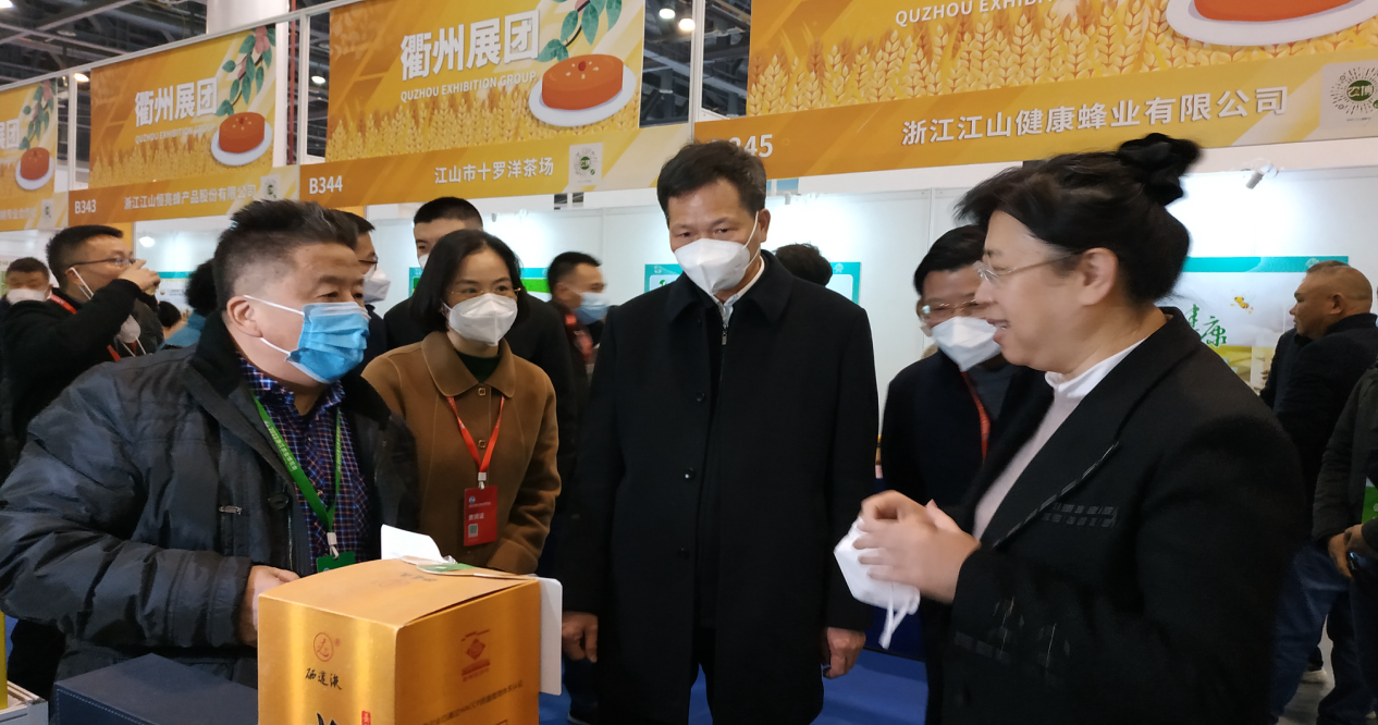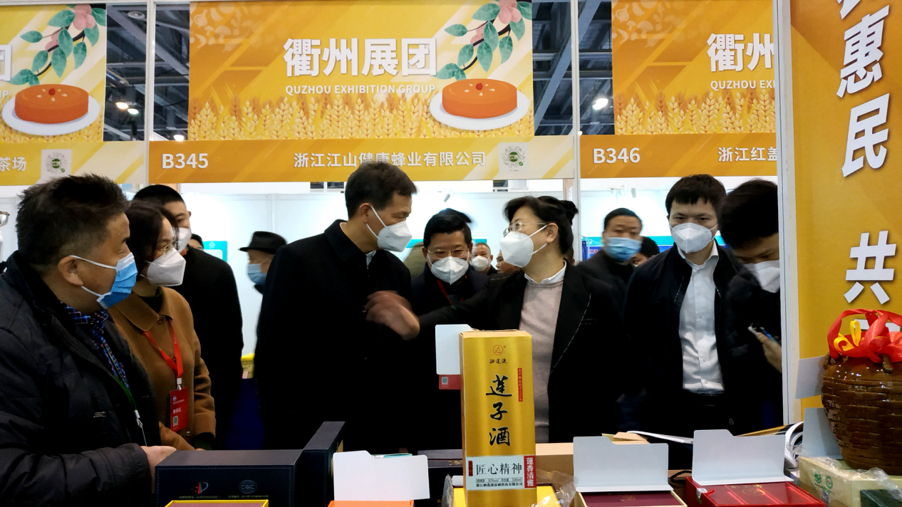 1月11日上午,衢州市市长徐张艳亲临展会现场,了解衢州市农产品销售情况。