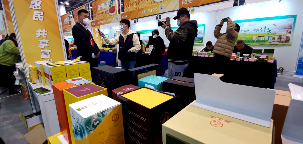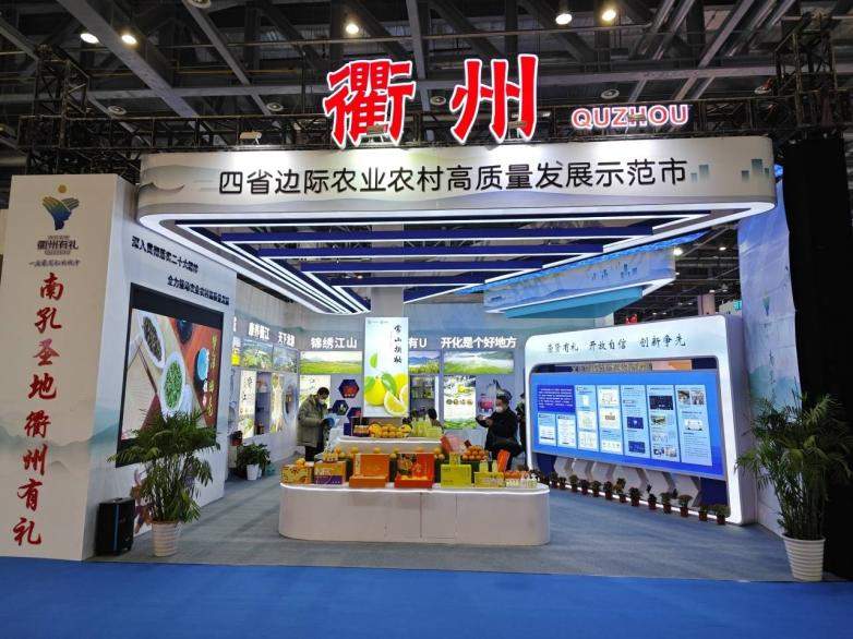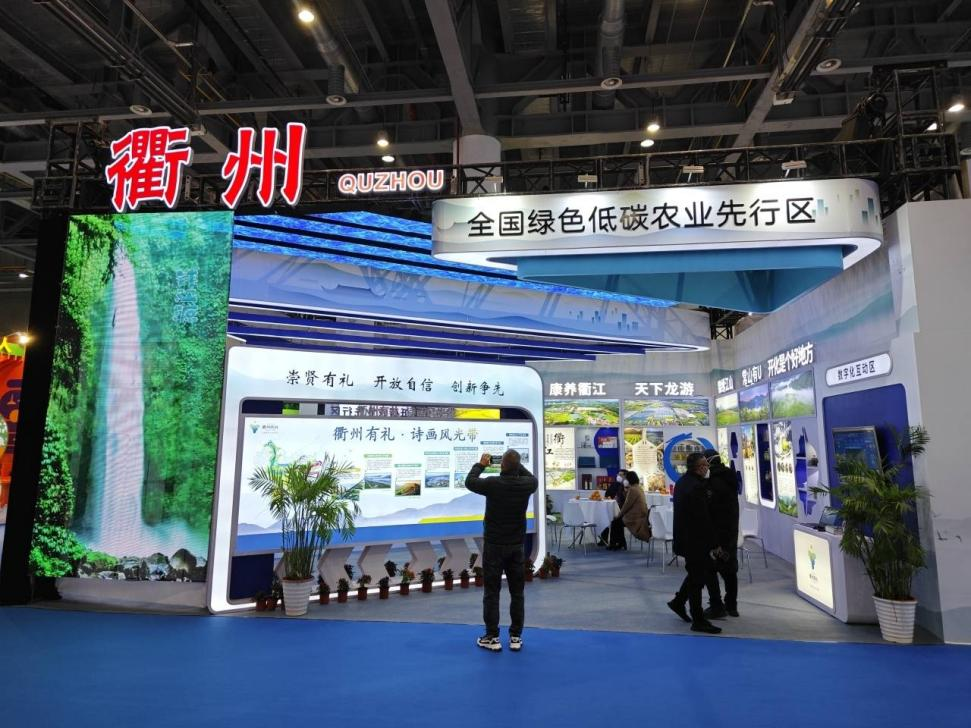 衢州馆分为展示区和展销区,展示区内以“衢州有礼”诗画风光带为载体,展示了各县(市、区)名特优新农产品,硒莲液莲子酒、柚香谷双柚汁、龙游花菇、江山猕猴桃等爆款农产品一一展出;衢州市创建全国绿色低碳农业先行区的经验做法也吸引众多参会领导和市民的关注。展销区内,衢州市共有75家主体、近千余款农产品展销,各色琳琅满目的农产品掀起一股抢购风潮。
